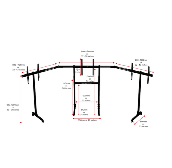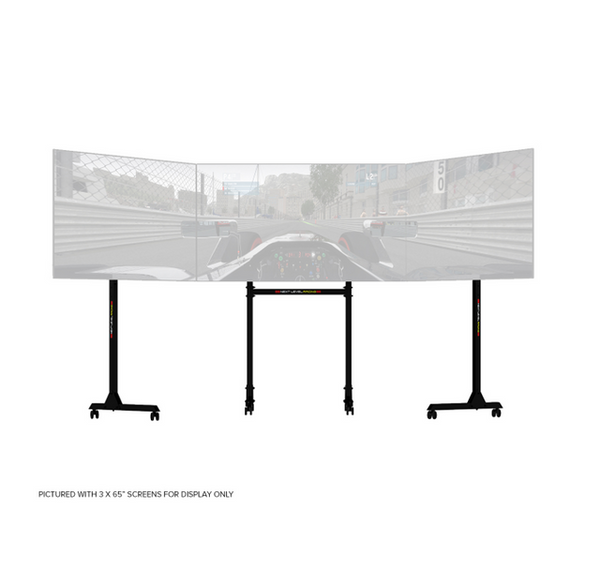 The Next Level Racing® Free Standing Triple Monitor Stand finishes off your racing simulator setup to give ultimate immersion to race like a professional. The stand supports triple screens from 32 - 65” allowing up to a huge 195” of peripheral vision for incredible realism. The stand includes both lockable wheels for easy movement and height adjustable feet, the choice is yours. The design is based on customer feedback allowing you to have your screens in the perfect position of your choice whether that is directly behind the wheel or further back from your cockpit and allowing you to change the position of the screens easily and quickly. Being completely free standing and with lockable wheels it also makes it the perfect monitor stand for events, trade shows and sim racing centres.
